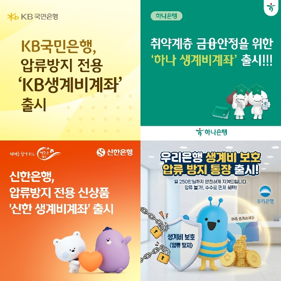 KB±¹¹ÎÀºÇàÀº ¡®KB»ý°èºñ°èÁ¡¯¸¦, ½ÅÇÑÀºÇàÀº ¡®½ÅÇÑ »ý°èºñ°èÁ¡¯¸¦, ÇϳªÀºÇàÀº ¡®Çϳª »ý°èºñ°èÁ¡¯¸¦, ¿ì¸®ÀºÇàÀº ¡®¿ì¸® »ý°èºñ°èÁ¡¯¸¦ °¢°¢ Ãâ½ÃÇß´Ù.