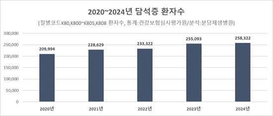 3ÀÏ ºÐ´çÁ¦»ýº´¿ø¿¡ µû¸£¸é ÃÖ±Ù 5³â°£ ´ã¼®Áõ ȯÀÚ¼ö¸¦ ºÐ¼®ÇÑ °á°ú Áö³­ 2020³â¿¡´Â 209,994¸íÀ̾úÀ¸³ª 2024³â¿¡´Â 258,322¸íÀ¸·Î ÃÖ±Ù 5³â»çÀÌ 23%Áõ°¡Çß´Ù.