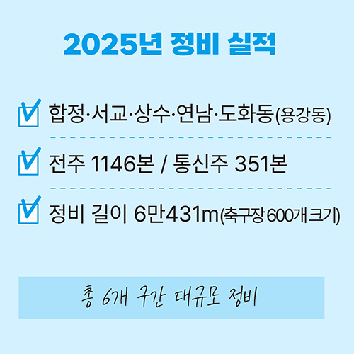 ¼­¿ï ¸¶Æ÷±¸´Â °úÇбâ¼úÁ¤º¸Åë½ÅºÎ°¡ ÁÖ°üÇÑ ¡®2025 °øÁßÄÉÀ̺í Á¤ºñ»ç¾÷ ÁöÀÚü Æò°¡¡¯¿¡¼­ ÃÖ°íµî±ÞÀÎ ¡®»ó¡¯À» ¹Þ¾Ò´Ù°í 3ÀÏ ¹àÇû´Ù. ÀÌ·Î½á ¸¶Æ÷±¸´Â 2021³âºÎÅÍ 5³â ¿¬¼Ó ÃÖ°íµî±ÞÀ» ´Þ¼ºÇß´Ù. ±¸´Â Æò°¡ °á°ú¿¡ µû¶ó ±âº» ¹èºÐ±Ý 18¾ï ¿ø°ú Àμ¾Æ¼ºê 5¾ï6000¸¸ ¿øÀ» Æ÷ÇÔÇØ ÃÑ 23¾ï6000¸¸ ¿øÀÇ 2026³â »ç¾÷ºñ¸¦ È®º¸Çß´Ù. Áö³­ÇØ ÇÕÁ¤¡¤¼­±³¡¤»ó¼ö¡¤¿¬³²µ¿ µî 6°³ ±¸°£¿¡¼­ °øÁßÄÉÀ̺í 6¸¸431m¸¦ Á¤ºñÇßÀ¸¸ç, ¡®±¸°£º° Ã¥ÀÓÅë½Å»ç ÁöÁ¤Á¦¡¯¸¦ ÅëÇØ ü°èÀûÀÎ °ü¸® ¼º°ú¸¦ ÀÎÁ¤¹Þ¾Ò´Ù.