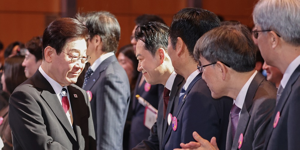 ¡ã ÀÌÀç¸í ´ëÅë·ÉÀÌ 1ÀÏ ¼­¿ï °­³²±¸ ÄÚ¿¢½º¿¡¼­ ¿­¸° Á¦107ÁÖ³â 3¡¤1Àý ±â³ä½Ä¿¡¼­ ±¹¹ÎÀÇÈû À嵿Çõ ´ëÇ¥¿Í ¾Ç¼öÇϰí ÀÖ´Ù. ¿¬ÇÕ´º½º