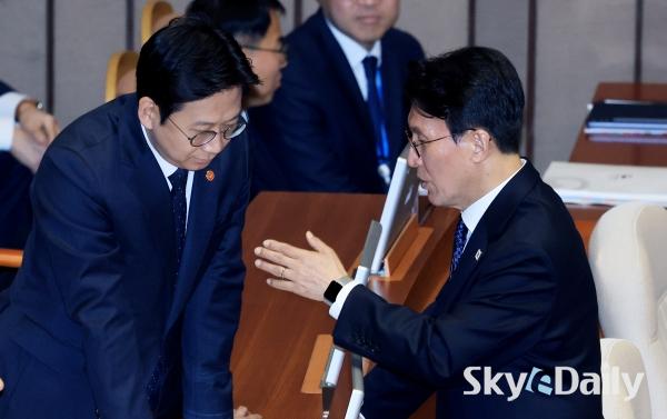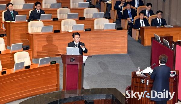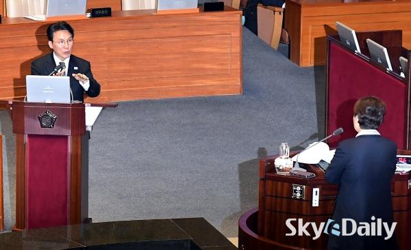 ¡ã ±è¹Î¼® ±¹¹«ÃѸ®°¡ 6ÀÏ ±¹È¸¿¡¼­ ¿­¸° °æÁ¦ ºÐ¾ß ´ëÁ¤ºÎ Áú¹®¿¡¼­ ´õºÒ¾î¹ÎÁÖ´ç À̾ðÁÖ ÀÇ¿øÀÇ Áú¹®¿¡ ´äÇϰí ÀÖ´Ù. À̳¯ ±è ÃѸ®´Â À̾ðÁÖ ´õºÒ¾î¹ÎÁÖ´ç ÀÇ¿øÀÇ ÁúÀÇ¿¡ È«ÇØ¸¦ ¿ìȸ ¼öÀÔ Ç׷ηΠ°ËÅäÇÏ´Â ¹®Á¦¿Í °ü·ÃÇØ ¡°¾ÈÀüÀÌ ´ãº¸µÈ´Ù´Â ÀüÁ¦°¡ ÀÖ¾î¾ß ÇÑ´Ù¡±°í ´äº¯Çß´Ù. ¹Ú¹Ì³ª ±âÀÚ ¨Ï½ºÄ«À̵¥Àϸ®
