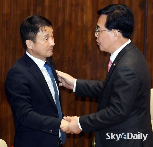 ¡ã ÇѺ´µµ(¿ÞÂÊ) ´õºÒ¾î¹ÎÁÖ´ç ¿ø³»´ëÇ¥¿Í ¼Û¾ð¼® ±¹¹ÎÀÇÈû ¿ø³»´ëÇ¥°¡ ´ëÈ­Çϰí ÀÖ´Ù.