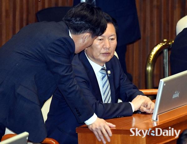 ¡ã Á¤Ã»·¡ ´õºÒ¾î¹ÎÁÖ´ç ´ëÇ¥°¡ µ¿·á ÀÇ¿ø°ú ´ëÈ­Çϰí ÀÖ´Ù. ¹Ú¹Ì³ª ±âÀÚ ¨Ï½ºÄ«À̵¥Àϸ®